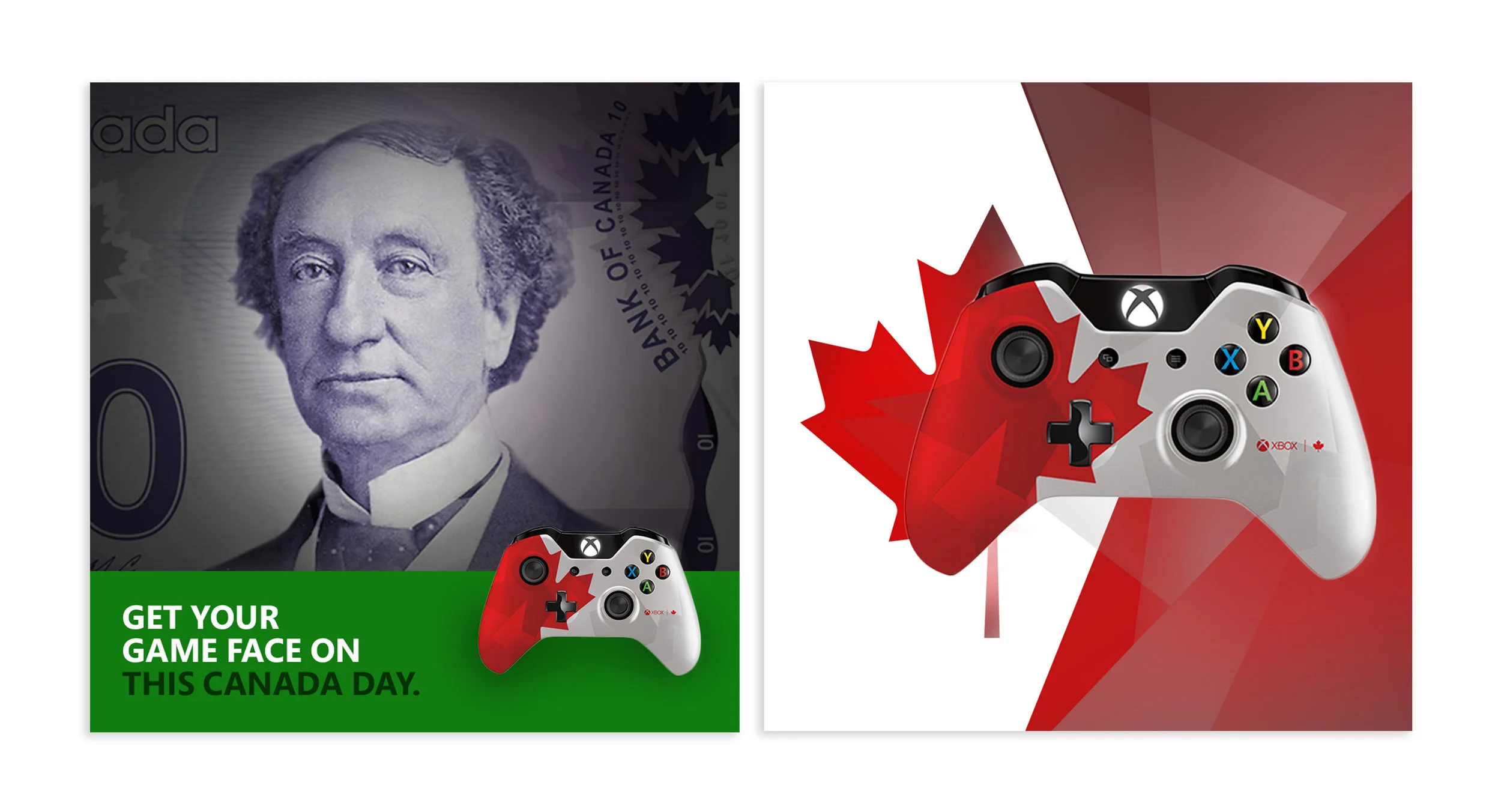 Xbox rolled out a limited-edition controller on Canada Day, so fans have a chance of winning it across multiple social platforms. We created two quirky Canadian themed banners to invite fans to “check-in” to each Xbox platforms in order to win the controller.